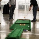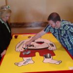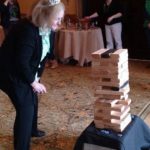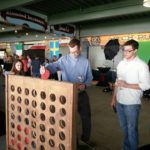 Giant Connect 4: A two-player, or team, game in which the players take turns dropping colored discs from the top into a seven-column, six-row vertically suspended grid. The pieces fall straight down, occupying the next available space within the column. The objective of the game is to connect four of one’s own discs of the same color next to each other vertically, horizontally, or diagonally before your opponent. The first player, or team, can always win by playing the right moves.